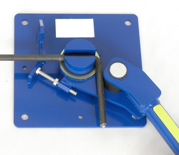 - Ohýbačka je vybavena nastavitelným doraz omezujícím pohyb rukojeti, což usnadňuje ohýbání tyčí pod úhlem 90 stupňů